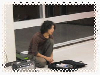 取材当日は三宅太鼓(東京本土から南へ180km地点にある伊豆諸島のひとつである「三宅島」の太鼓です)の基本の動きや、スローモーション・ストップモーションの基礎練習を宇宙空間に漂っているような音楽を使用して、行われていました。その音楽も自身で稽古のために作曲しているそうです。
