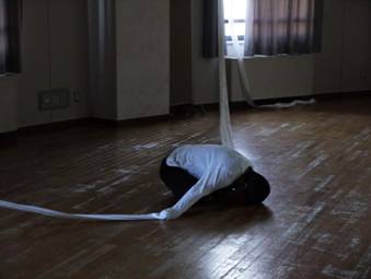 美術と人の関係において、大概、美術は「舞台美術」であるか、人は「美術の一部」です。そうではなく パフォーマンスと美術の対峙を考え作品化しています。